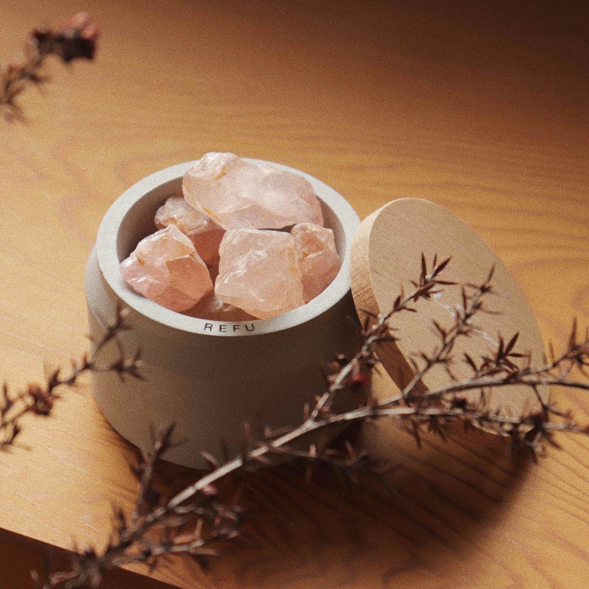 使用前清先使用濕紙巾擦拭原礦並依照個人喜好擺放至擴香容器內,